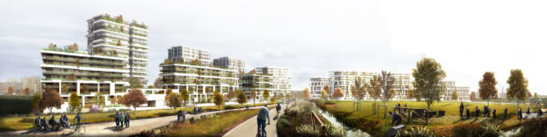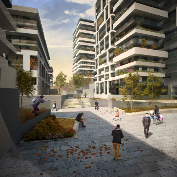 L’atteggiamento, che ha indirizzato la fase di progettazione, è stato quello di muoversi in assonanza con l’impostazione planivolumetrica generale proposta nel Programma di Intervento ridefinendo le volumetrie in accordo con le linee guida alla progettazione, nel rispetto dei vincoli di altezza, allineamento e prescrizioni morfologiche generali. Si è preferito procedere con aggiustamenti e modifiche, accorpando alcuni edifici in linea e nella definizione di elementi simbolici a torre