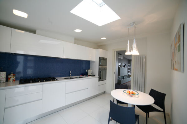 Ogni spazio è ordinato, semplice e funzionale: la luce zenitale crea chiari scuro che valorizzano gli elementi classici, la carta da pareti articola e dona materia alle superfici interne, i colori e i materiali creano un ambiente confortevole e rassicurante.