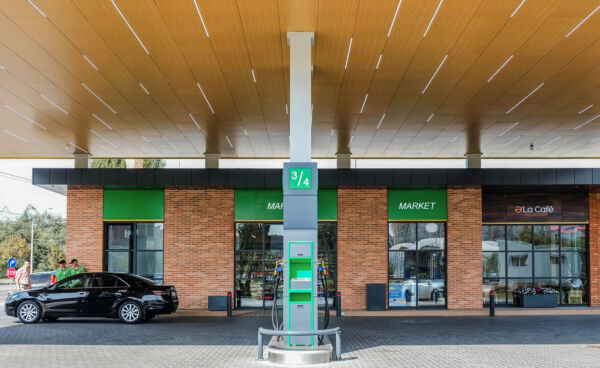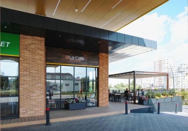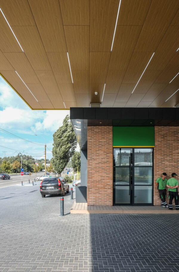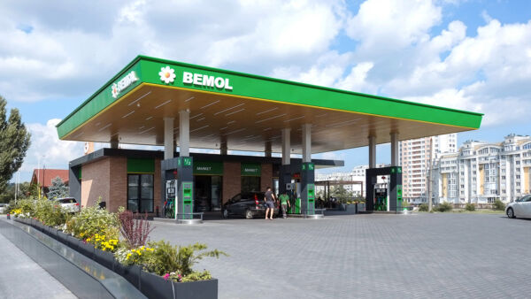 Il design della nuova stazione di servizio Viteazul, situata nel centro di Chisinau in Moldavia, parte dal concetto di rivoluzionare l’estetica e la funzionalità delle stazioni di servizio del marchio Bemol in questo Paese. La nostra idea è stata quella di creare un luogo dove il cliente, di passaggio per fare rifornimento, volesse fermarsi e trattenersi più a lungo per apprezzare i servizi del bar al posto del solito fugace utilizzo che caratterizza questa categoria di edifici. Per ottenere un luogo caldo ed accogliente abbiamo deciso di mescolare alcuni dei parametri stilistici delle stazioni di servizio con quelli tipici delle case, concettualmente caratterizzati da un grande tetto che accoglie e protegge gli “ospiti”. Abbiamo optato per colori e materiali caldi così da creare un’atmosfera rilassante e accogliente.