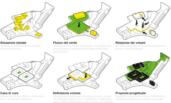 The project is the result of a careful analysis of the urban context in which the entire intervention is to be inserted, with the intention of generating a strong integration between new and existing buildings and the surrounding greenery.