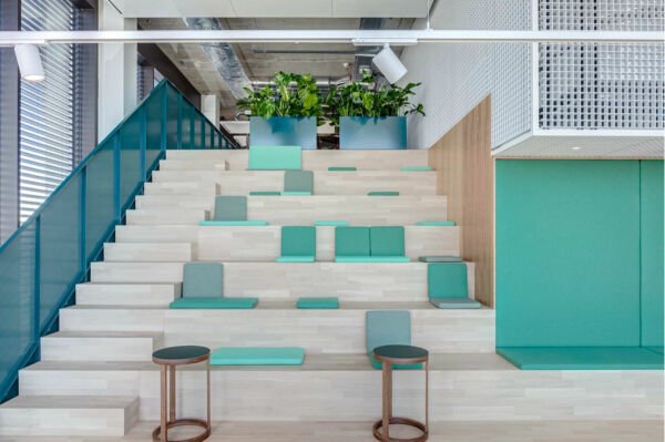 The design concept was developed on the basis of a brand analysis by JOP and closely coordinated with the client. The areas are divided into stimulating “activity zones” and concentrated “focus zones”, which is reflected in the colour scheme. The choice of materials plays with the contrasts of the technical and “antiseptic” as well as warm, inviting and natural influences.
