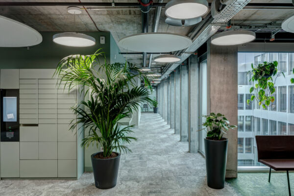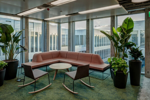 Gli standard più elevati delle apparecchiature AV, IT e di sicurezza, nonché l’accessibilità e la sostenibilità sono stati implementati in tutta la sistemazione dell’inquilino. La conversione è stata effettuata in parte in parallelo con la sistemazione di base e in parte durante le operazioni in corso a causa di un trasferimento scaglionato.