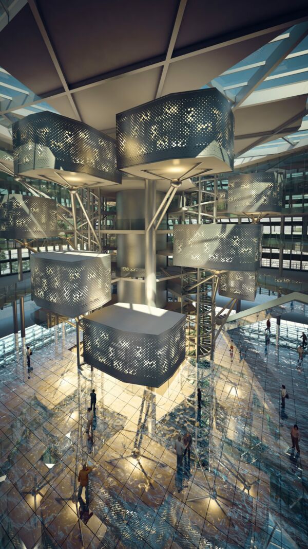 Il concept di Palazzo Italia individua nell’Albero della vita l’icona centrale e l’elemento generatore e morfogenetico dello spazio e della sua composizione. L’ “Albero della vita” assume il ruolo di un apparato spaziale, tecnologico e distributivo oltre che un significato metaforico riferito al contributo che l’Italia e la sua cultura hanno dato al globale sviluppo della storia occidentale, e non solo. Nel progetto l’ “Albero della vita” attiva una dialettica spaziale e morfologica tra se stesso ed il volume che lo contiene, con cui si integra e che si propone nel tipo architettonico della “basilica”. Il tema della piazza è declinato in un’accezione che richiama di nuovo la storia delle città d’Italia, la loro architettura in rapporto alla singolarità geografica del nostro Paese, significativamente relazionato al mare, spesso costruita da piazze aperte sull’acqua e significate da tale condizione.