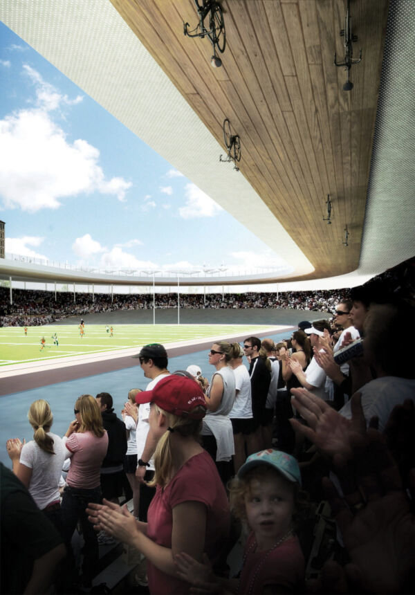 Glorioso passato ciclistico e futuro sportivo flessibile, ludico ed esperienziale: come accogliere questo cambiamento, riconciliando memoria e identità con le aspettative del multiverso contemporaneo? L’attuale tracciato è inadatto ad essere utilizzato in futuro: d’altra parte il Vigorelli è legato, nell’immaginario pubblico, al mondo delle biciclette. Il progetto conserva il tracciato attuale, ma sospende il soffitto del soffitto. Un’installazione “Pop” dedicata al ciclismo, a metà tra passato e futuro. Viene inoltre ampliato lo spazio dedicato a sport ed eventi e dotato di un nuovo tracciato staccabile di 250 metri. Il velodromo e l’area esterna ospiteranno un mix di funzioni incentrate sul concetto di benessere, riconfigurando questo luogo come la nuova Vigorelli Wellness Arena.